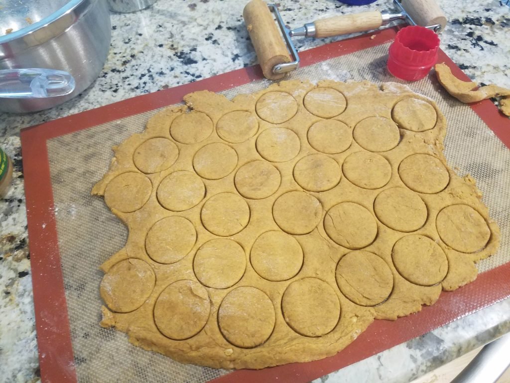 In a large mixing bowl, combine the oat flour, pumpkin puree, and peanut butter. Add the egg and mix everything together until it forms a sticky dough. You can add the water or low-sodium broth a little at a time, depending on the consistency of the dough. The dough should be firm enough to roll out, but not so dry that it cracks.